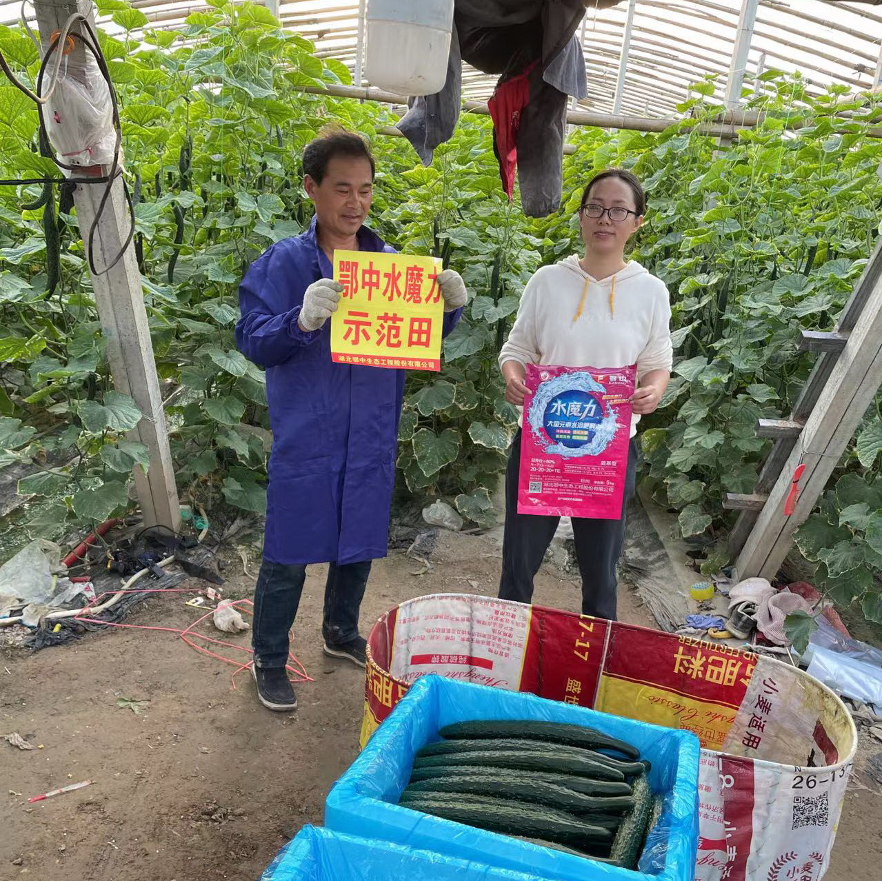 梁建房也熱心分享自己的種植經(jīng)驗和心得,他強調(diào),想要種好黃瓜,澆水、施肥及日常管理都至關(guān)重要,尤其是施肥。黃瓜根系淺,較為軟弱,施肥濃度過高會造成燒根。黃瓜施肥要少吃多餐。底肥使用鄂中51%(17-17-17)硫酸鉀,追肥用鄂中盛世經(jīng)典57%(19-19-19)和鄂中水魔力60%(20-20-20)。這樣使用不僅可以養(yǎng)棵,使植株健壯,還可以快速膨果,保證每天都有大量黃瓜采摘。