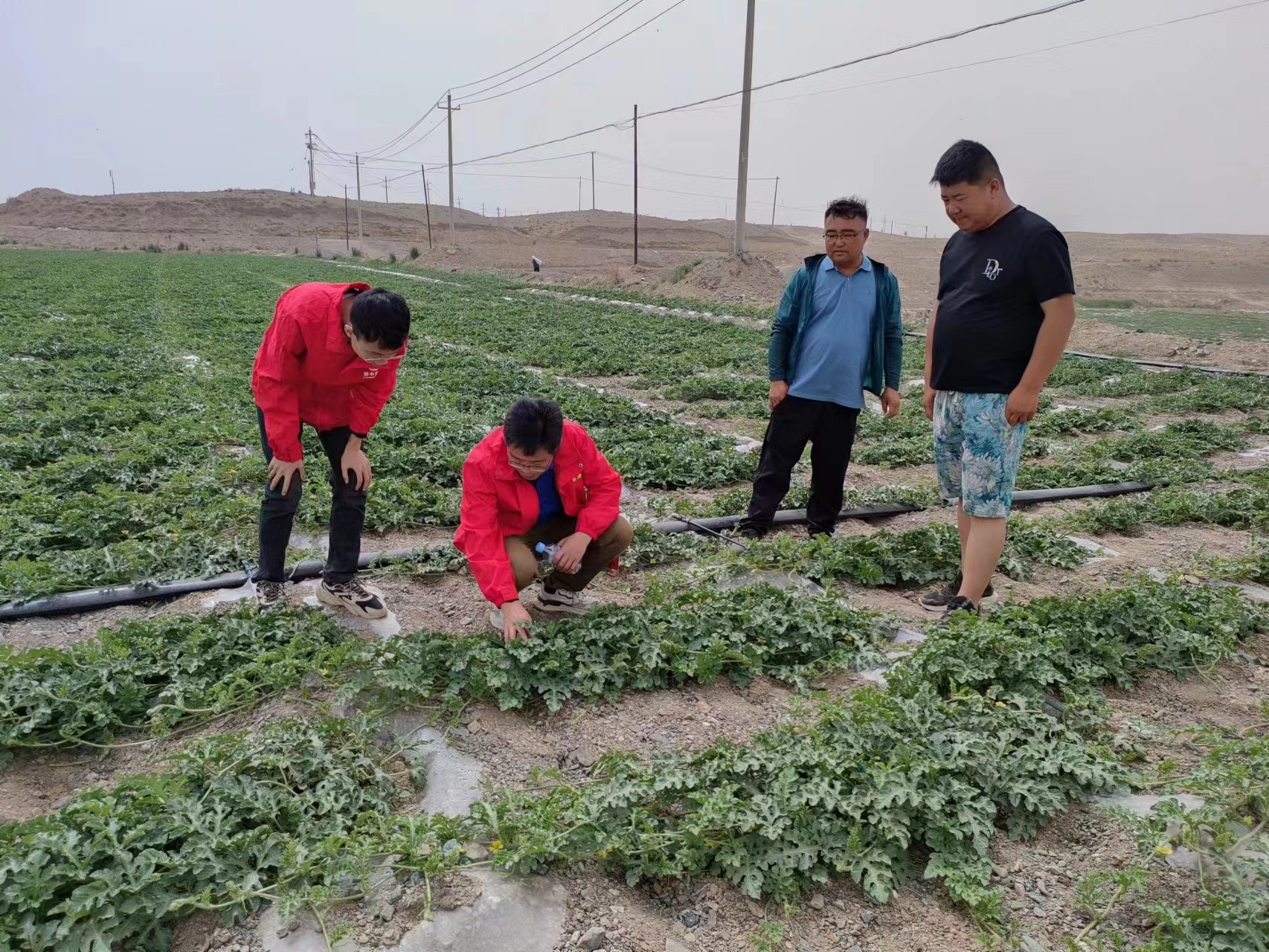 劉大哥好不容易通過線上找到鄂中公司的專業(yè)技術團隊,得知這一情況,公司火速派農藝師劉勇平到景泰為他做現(xiàn)場指導。經(jīng)過仔細檢測、探討,發(fā)現(xiàn)胡大哥的西瓜地存在很多問題,如肥水供應不足、土壤通氣性差,對西瓜苗的根系生長極為不利,造成營養(yǎng)吸收能力弱,因而幼苗出現(xiàn)僵苗不長等情況。
