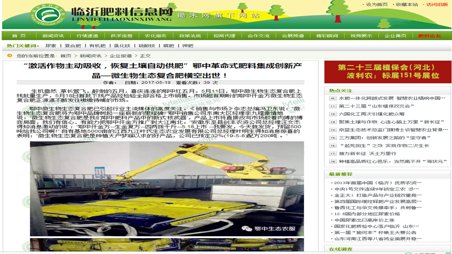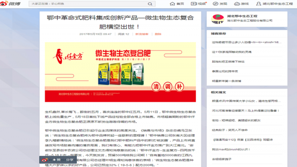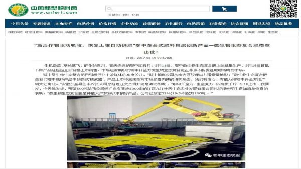 《中國新型肥料網(wǎng)》.《肥料信息網(wǎng)》等新媒體強烈關注鄂中仟金方微生物生態(tài)復合肥:鄂中生態(tài)革命式肥料集成創(chuàng)新產(chǎn)品—微生物生態(tài)復合肥橫空出世!