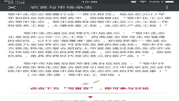 鄂中微生物生態(tài)復(fù)合肥是湖北鄂中生態(tài)工程股份有限公司董事長(zhǎng)楊才超先生“百年鄂中,千年大計(jì)”宏大愿景的首款新型生態(tài)肥料產(chǎn)品。楊才超多次指出:當(dāng)前行業(yè)發(fā)展已經(jīng)到了一個(gè)必須轉(zhuǎn)型的新階段。產(chǎn)能嚴(yán)重過(guò)剩,市場(chǎng)競(jìng)爭(zhēng)激烈,國(guó)家相繼出臺(tái)了化肥農(nóng)藥“零增長(zhǎng)”行動(dòng)計(jì)劃,《土壤污染防治法》(土十條),農(nóng)業(yè)部有機(jī)肥替代化肥行動(dòng)方案等產(chǎn)業(yè)政策。