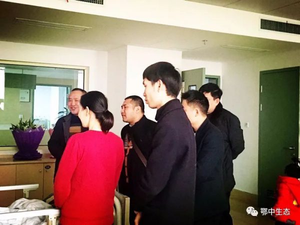 ?????? 2018年1月1日下午鄂中生態(tài)工程股份有限公司工會副主席吳全策,人力資源部副部長邱克明以及豐神農(nóng)資辦公室主任夏洪元、梁鑄一行帶著楊董事長的關(guān)心和公司各部門兄弟姐妹的牽掛前往荊門二醫(yī)血液科看望了患病員工羅榮寶。吳主席一行向羅榮寶同志表達了真誠的問候,讓他積極配合治療并鼓勵他戰(zhàn)勝病魔,早日恢復健康,回到我們的大家庭中來,并送上了鮮花果籃等慰問品和愛心捐款103882元及2000元工會慰問金。
