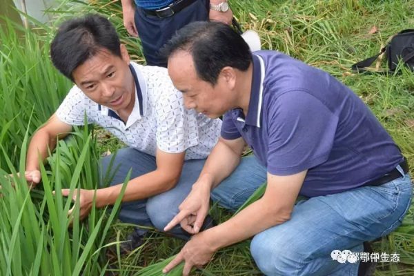 在40畝(環(huán)形蝦溝13畝)蝦稻共生示范田里,示范戶李忠國現(xiàn)場介紹說:“7月8日畝施仟金方蝦稻套餐肥32%(19-5-8)底肥48斤,施肥31天后。與往年施用其它復(fù)合肥有一個(gè)顯著特點(diǎn),就是水溝表層不再產(chǎn)生大面積油質(zhì)殘留,無青苔產(chǎn)生,仟金方蝦稻套餐肥施用后分解了水底殘留有毒物質(zhì)并轉(zhuǎn)化為肥效,無蝦病,無死蝦現(xiàn)象產(chǎn)生。”鄂中生態(tài)中醫(yī)養(yǎng)護(hù)隊(duì)隊(duì)員夏萬峰現(xiàn)場補(bǔ)充說明:仟金方蝦稻套餐肥主要功效就表現(xiàn)在防青苔,解水、解毒、解殘留,肥蝦、肥稻、肥草。李忠國還介紹說:“我已經(jīng)三年沒有收到稻谷,施用水稻長勢好,莖稈健壯,水稻分蕖數(shù)多,共生田有效防止龍蝦進(jìn)田危害,豐富了小龍蝦的食物來源,促進(jìn)了小龍蝦生長,今年水稻有望增產(chǎn)增收,小龍蝦也比施用其它復(fù)合肥田溝龍蝦規(guī)格大,買價(jià)高。”2塊示范田施用仟金方蝦稻套餐肥后都表現(xiàn)為提高了土壤保肥,保水功能,水溝內(nèi)水草茂盛,生態(tài)環(huán)境好,肥蝦肥草肥稻。