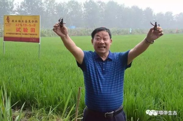 在23畝(環(huán)形蝦溝7畝)蝦稻連作示范田里,示范戶胡萬義現(xiàn)場用事實(shí)說話:6月27日畝施仟金方蝦稻套餐肥32%(19-5-8)45斤,施肥40天后,比往年和施用其它復(fù)合肥相比,水稻長勢好,莖稈健壯,葉多葉肥葉綠葉厚,早分蕖7天左右,分大蕖,分蕖數(shù)多;水稻根系發(fā)達(dá),須根長,數(shù)量多;無病蟲害發(fā)生,有效預(yù)防了水稻紋枯病,基腐病,稻溫病,稻曲??;同時(shí)減肥省時(shí),胡萬義說:“以前用其它復(fù)合肥1畝田施用55斤,現(xiàn)在用仟金方畝施40多斤,節(jié)約20元左右存本,提高了肥料的利用率。施用后主要特點(diǎn)是無青苔產(chǎn)生。環(huán)形蝦溝內(nèi)水體肥、活,水生浮游生物的數(shù)量增多,水質(zhì)良好,小龍蝦比其它田溝龍蝦規(guī)格大,買價(jià)高,達(dá)到30-40元/斤”。
