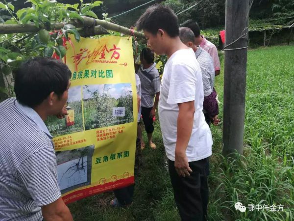 黨海榮現(xiàn)場傳播仟金方肥效:去年我的百香果每畝產(chǎn)量平均在5000斤左右,今年施用鄂中仟金方微生物生態(tài)復(fù)合肥,預(yù)計每畝增產(chǎn)1200斤左右,多增收3500元左右,穩(wěn)獲高產(chǎn)。黨海榮還介紹了示范田和對照田施肥情況:在1畝示范田7月26日施鄂中仟金方硫酸鉀型42%(12-6-24),0.5斤/株,環(huán)狀溝施,一年生樹,施肥后15天再施第二次。在1畝對照田里,土壤和樹勢基本一樣,7月26號開始施用其它品牌硫基45%(15-15-15),0.5斤/株,環(huán)狀溝施,一年生樹,施肥后15天再施第二次,連續(xù)施用4次后對比,鄂中仟金方效果明顯。