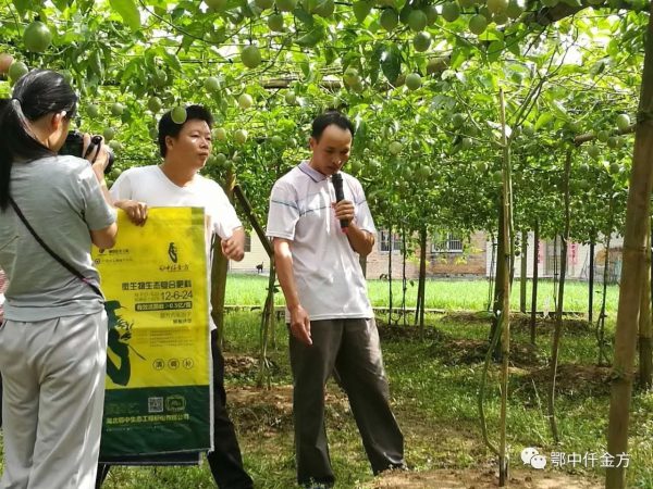 示范戶黨海榮告訴鄂中新媒體:“以前我們這里是‘荔枝之鄉(xiāng)’,如今多了個‘百香果之鄉(xiāng)’,幾乎家家戶戶都種有百香果,種植面積也從幾畝到幾十畝不等?!拔覐娜ツ觊_始在這片土地上種植百香果,現(xiàn)在總共種了5畝百香果。感謝片區(qū)經(jīng)理易偉把我1畝百香果園納入鄂中仟金方示范田,還給我免費(fèi)送來了仟金方示范肥料,手把手教我施用技術(shù)。真正做到了為我們果農(nóng)賺錢,為我們果農(nóng)服務(wù)!”