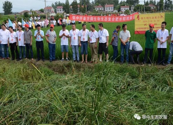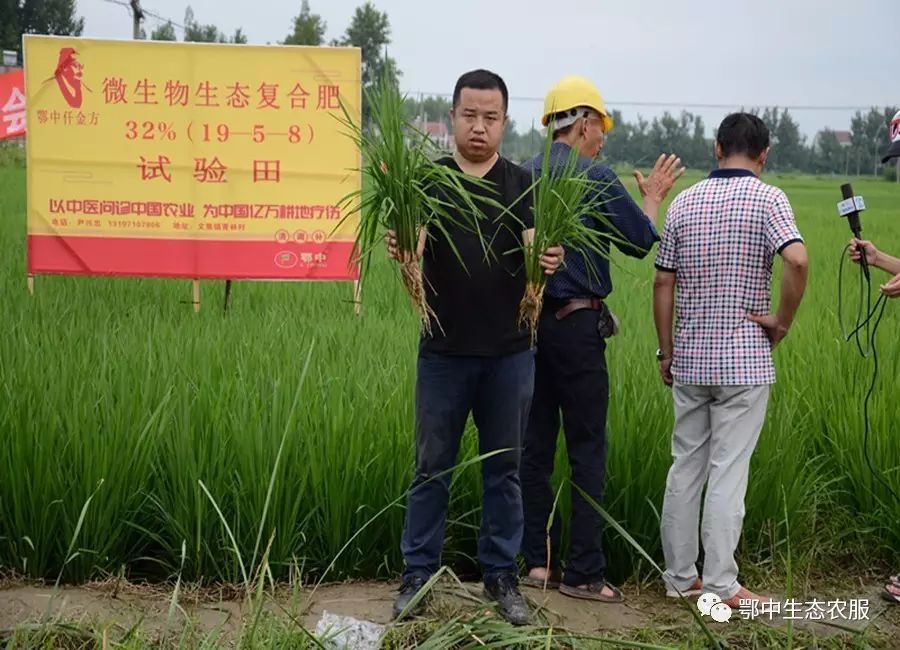鄂中生態(tài)新產(chǎn)品研發(fā)部部長艾新帥、中南大區(qū)總經(jīng)理杜水清、荊門分公司經(jīng)理田興等在接受專家和媒體記者采訪中表示:“鄂中仟金方有明顯減肥增效提質(zhì)的作用,符合當(dāng)前國家農(nóng)業(yè)產(chǎn)業(yè)政策,鄂中仟金方有明顯改良土壤和刺激根系生長的作用,說明仟金方微生物生態(tài)復(fù)合肥種地養(yǎng)地、防病抗病效果明顯?!笔痉短锓N植戶羅光美說:“根據(jù)長勢(shì)可估計(jì)每畝能增產(chǎn)150-300斤稻谷?!?/p>