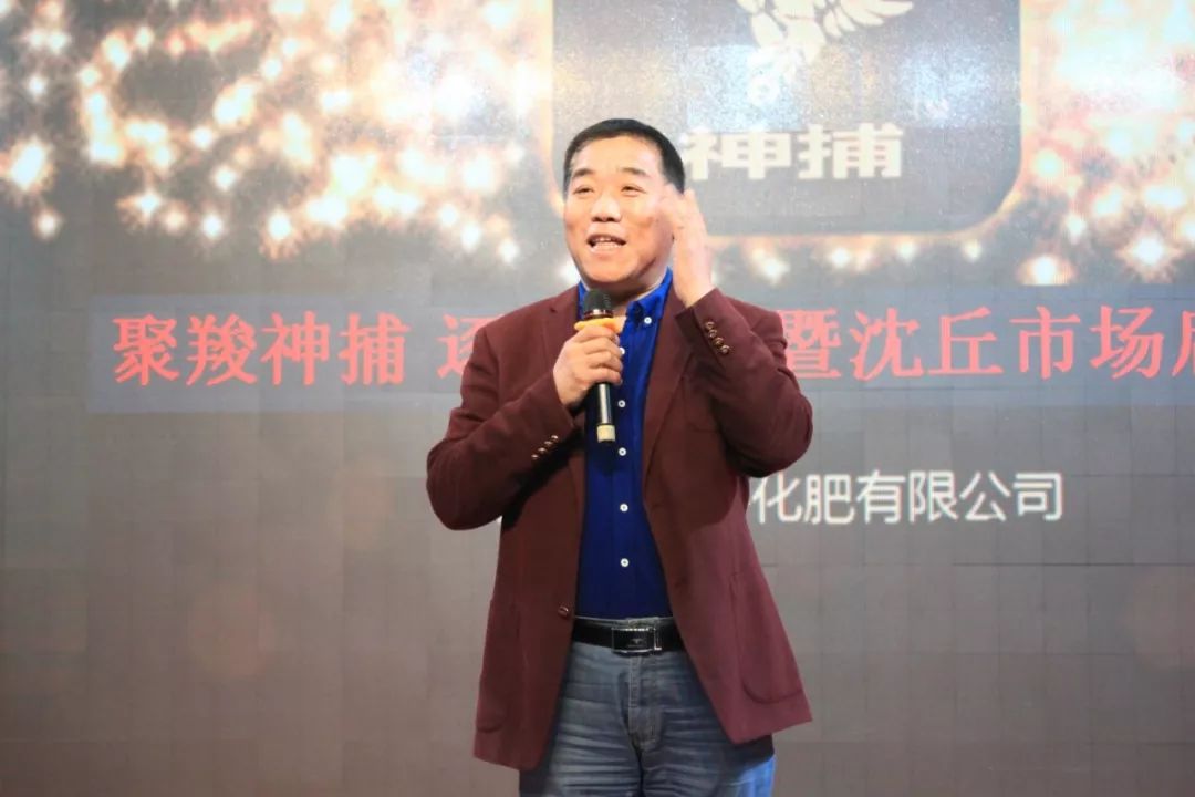 湖北浩斯特化肥有限公司總經(jīng)理助理蔡建新宣布“神捕”沈丘市場啟動儀式圓滿成功