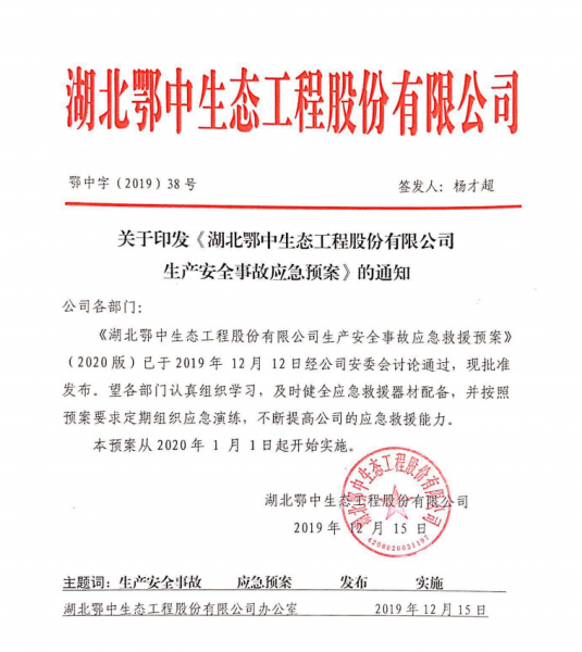 湖北鄂中生態(tài)工程股份有限公司應(yīng)急預(yù)案(2020版)1.10