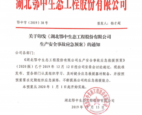 湖北鄂中生態(tài)工程股份有限公司應急預案(2020版)1.10
