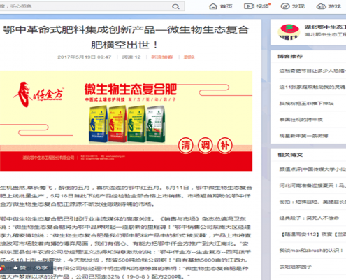 《中國新型肥料網(wǎng)》.《肥料信息網(wǎng)》等新媒體強烈關(guān)注鄂中仟金方微生物生態(tài)復(fù)合肥:鄂中生態(tài)革命式肥料集成創(chuàng)新產(chǎn)品—微生物生態(tài)復(fù)合肥橫空出世!