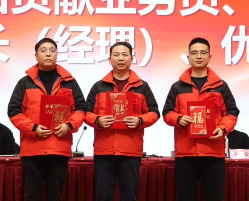 2025年鄂中生態(tài)總結(jié)表彰大會(huì)上,羅文元(中)作為優(yōu)秀分公司經(jīng)理登臺(tái)領(lǐng)獎(jiǎng)