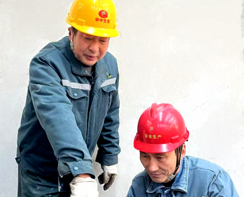 薛愛國(guó)(左一)察看設(shè)備運(yùn)行情況