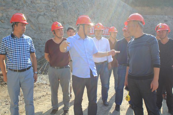工地上,彩旗招展,機械轟鳴,塔吊高速運轉(zhuǎn);“綠色礦山、和諧礦區(qū)、誠信礦務(wù)”等巨幅標(biāo)語格外醒目。在主廠房前、在輔助設(shè)施旁、在正在施工的1.35公里道路上,楊才超董事長每到一處,關(guān)心、關(guān)注最多的就是安全、工期、質(zhì)量,每一個環(huán)節(jié)、每一個細(xì)節(jié),都了解、交待得清清楚楚。